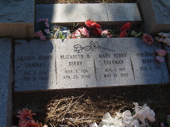 Gravestone for the four Berry sisters. From Find-a-Grave entry for Lillian Berry Sanders.