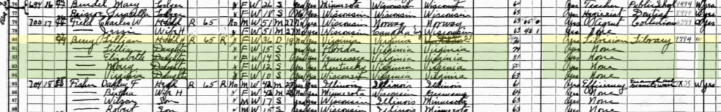1930 federal census schedule showing Lillian Berry and her four children in Milwaukee. They rented an apartment, likely near the public library where Lillian worked.